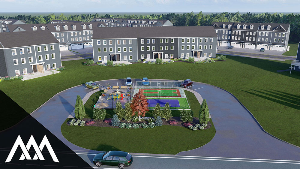 Neighborhood and landscape design with duplex houses in Londonderry New Hampshire